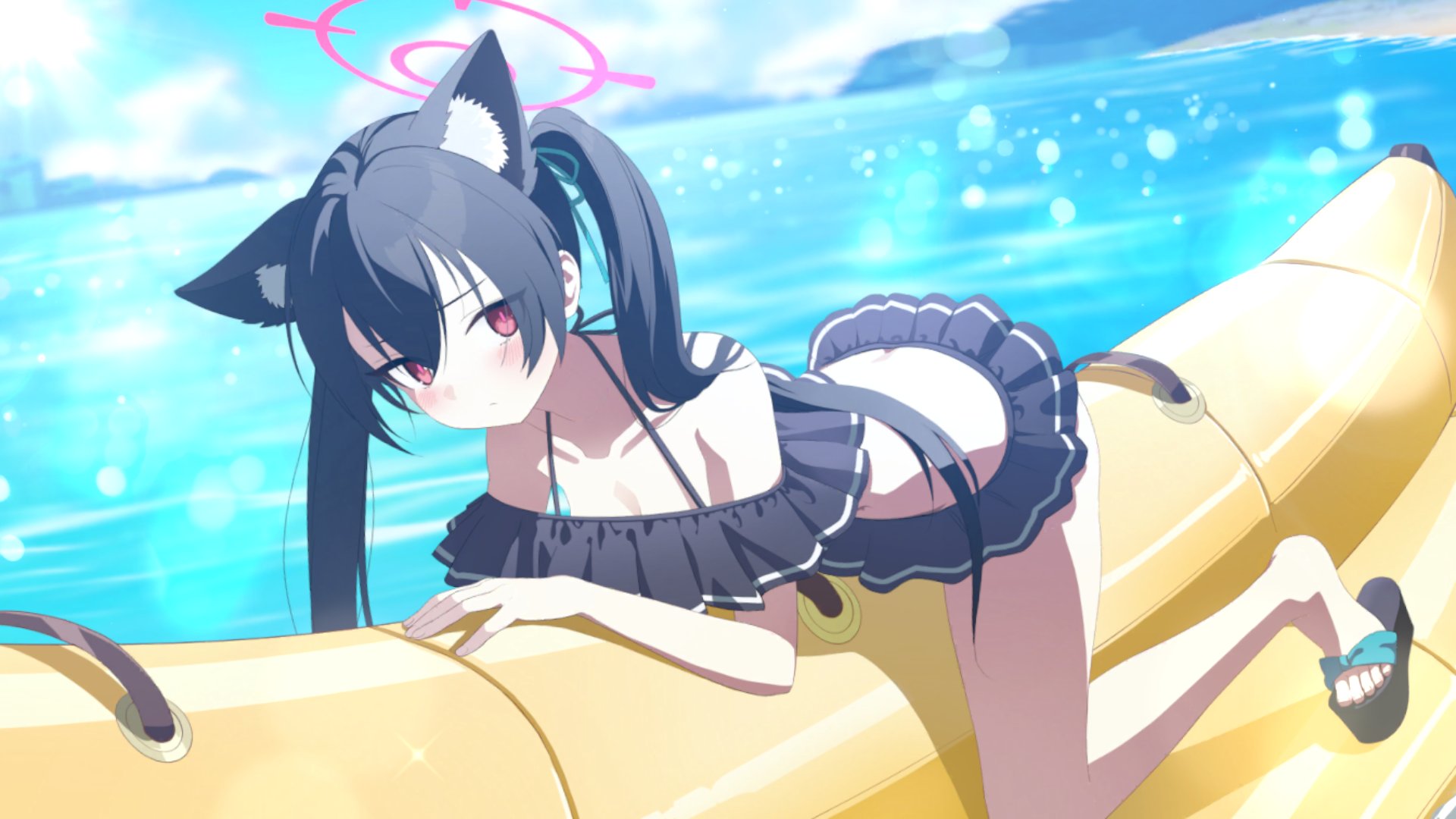倉庫で放置されたバナナボートを見つけたセリカは、それが問題なく使えるか、先生と一緒にテストをしようとする。