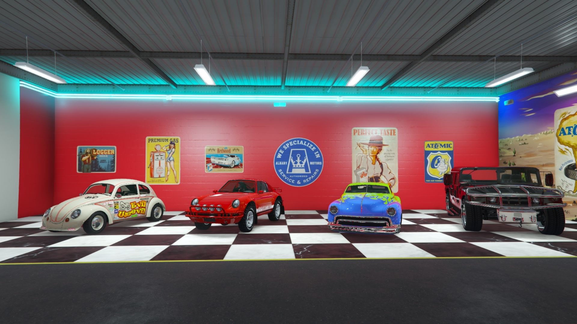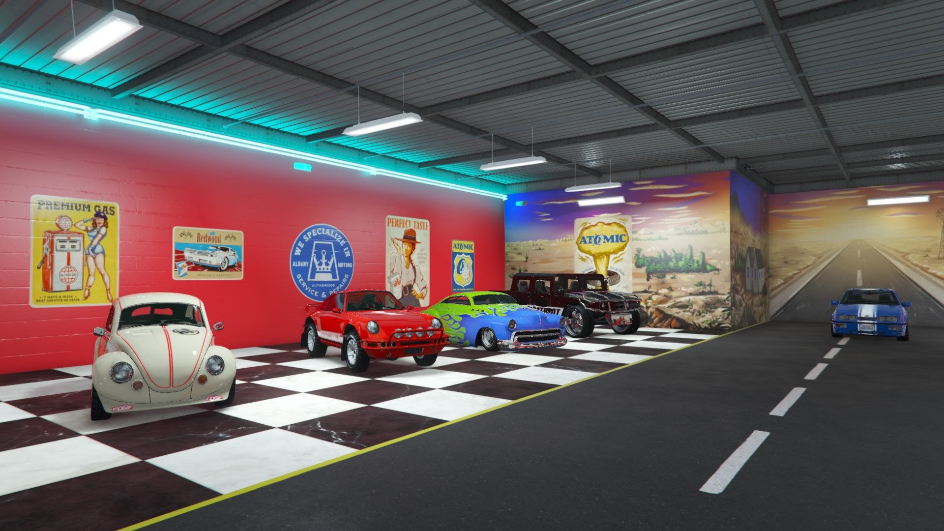 今回自分が用意したガレージは、「GTAミニカーガレージ」。最近は記事を更新できていないですが、ミニカーでGTAワールドを作りたい!(GTA感のあるミニカーを探そう)の企画をやっていたので、逆にGTAでミニカーっぽい車を集めたガレージを作ってみようという発想でした。おもちゃの世界をゲームに逆輸入。