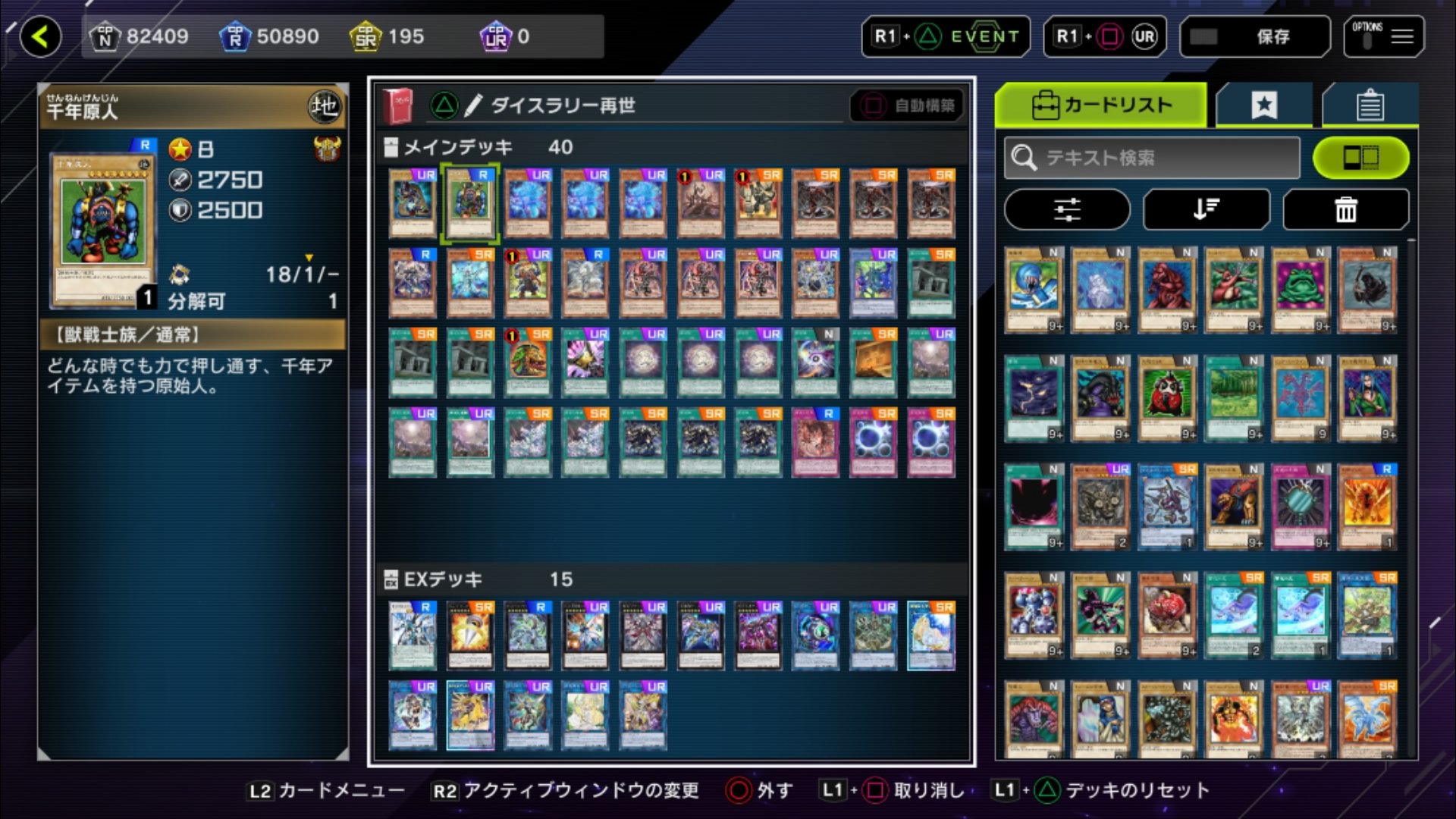 今回のダイスラリーにおけるボーナスポイントの基準は「攻撃力2500以上のモンスターを出す」「闇属性モンスターを召喚・特殊召喚する」「永続魔法・永続罠を場に出す」なので、それを満たせるデッキを探した結果……リジェネシスでした。おいおい、ランクマでもリジェネシスなのにイベントでもリジェネシスなのかよ!と思ったんですけど、やっぱりリジェネシスが一番ラクで……レッドデーモンとか使おうと思ってたのに結局リジェネシスに戻ってきちゃった……。