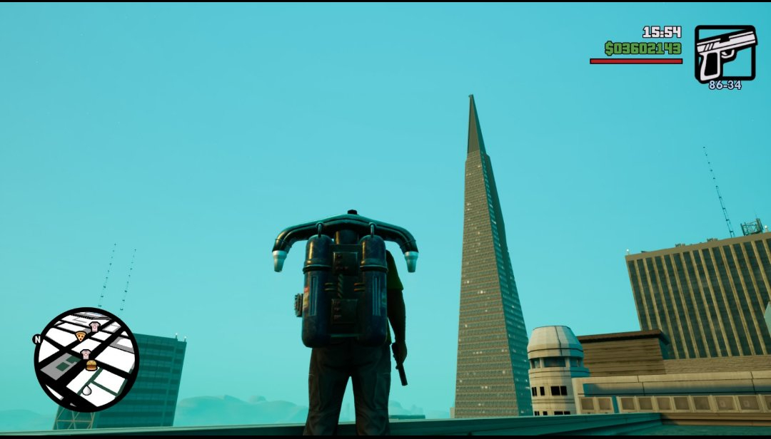 しかし、GTA5よりも10年前に発売されたゲーム、GTA SAでもパラシューティング遊びが用意されていたことはご存知でしょうか?特にミッションが用意されているわけでもなく、建物に出入りできることをゲーム中で示唆されることもないので、知らない人は全く知らないであろう遊びです。