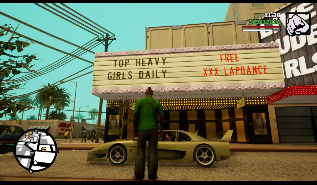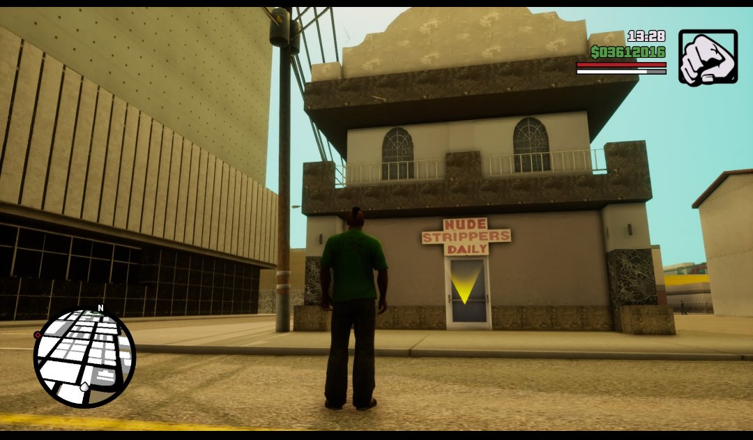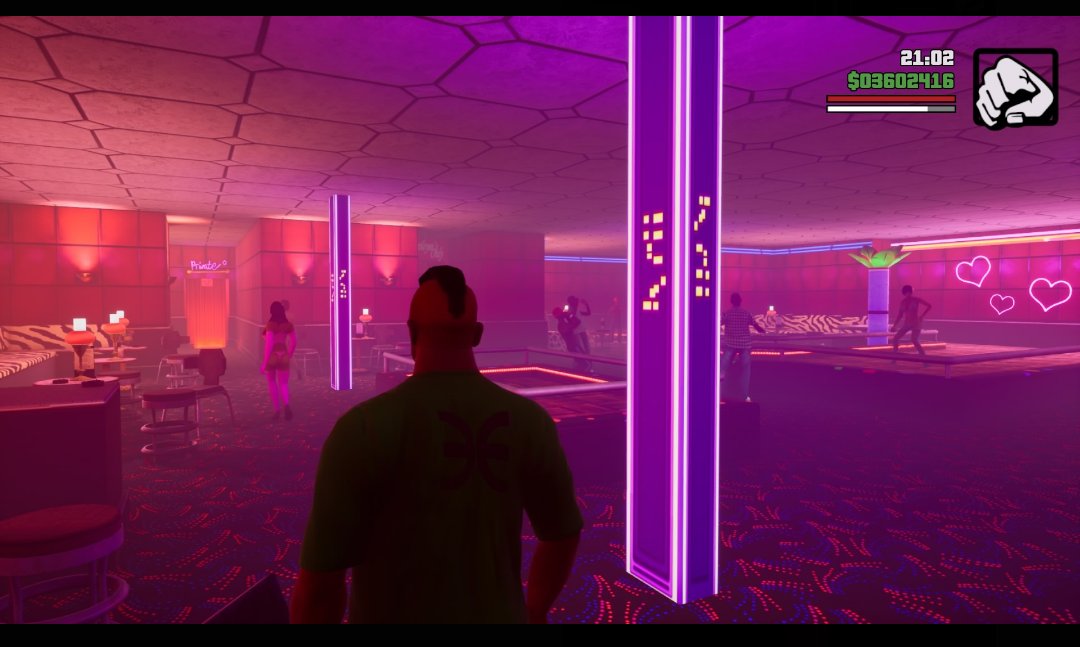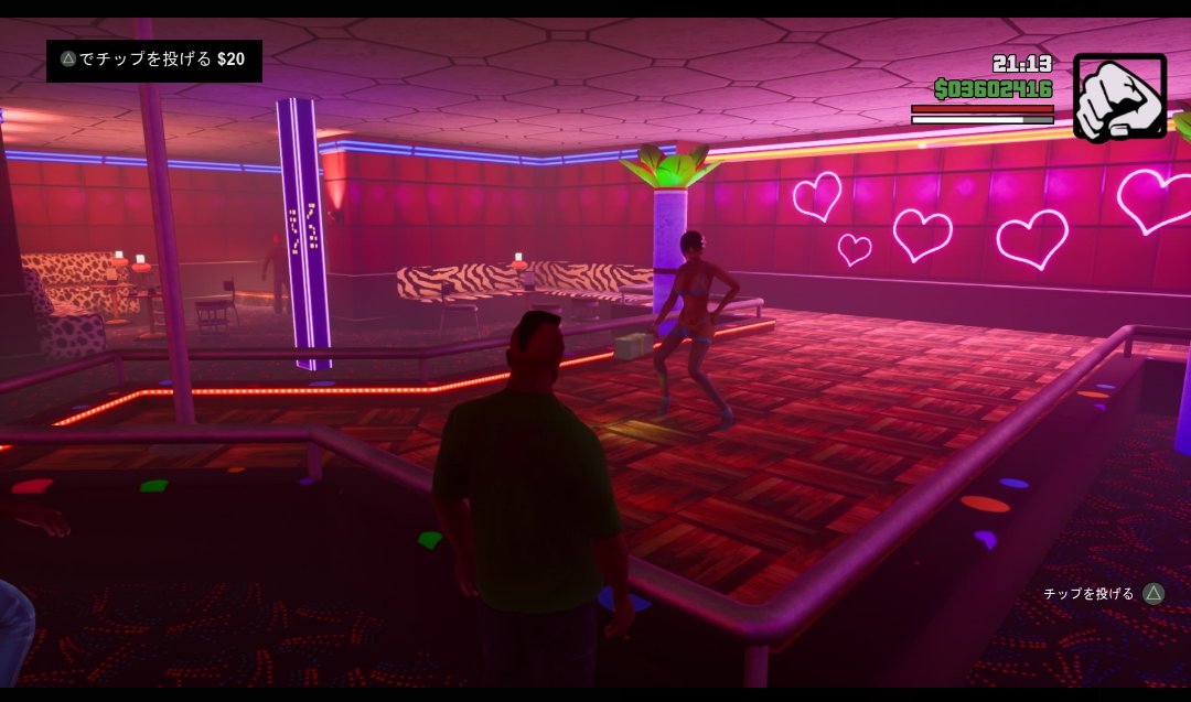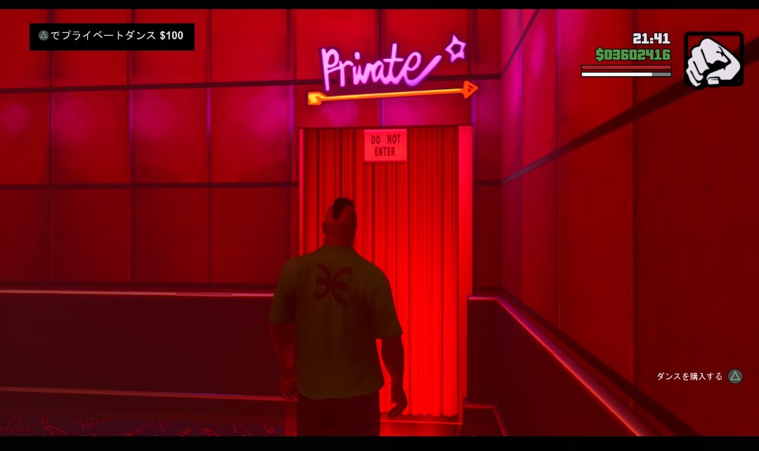 ストーリー中で絡むこともなく、マップに表示されず、サブミッションや達成度にも関係しない。ゲーム中のヒントは、建物の入り口に中に入れるマーカーが出ていることだけ。全くストリップクラブに触れることなくサンアンドレアスのプレイを終えてしまっても無理はありません。