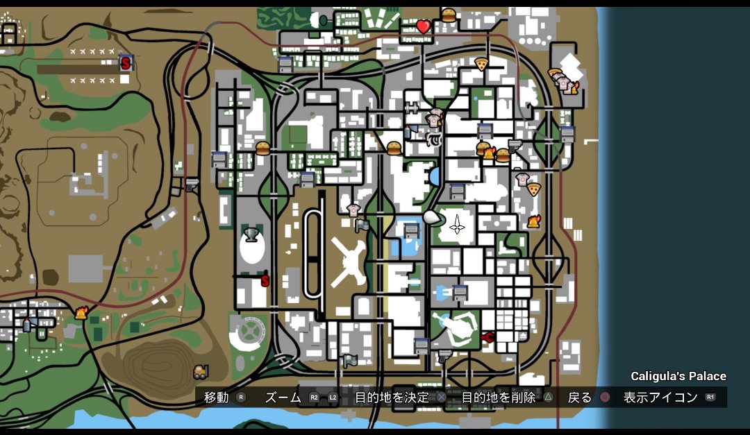 このゲームを代表するもう1つのカジノがここ、カリギュラス・カジノ(正式名称はカリギュラス・パレスらしいぞ)。元々はシンダッコ・ファミリーが所有していましたが、レオーネ・ファミリーとフォレッリ・ファミリーが共同経営に名乗りを上げ、イタリアンマフィア同士で血腥い抗争が勃発しました。CJはその抗争で暗躍し、おまけに大強盗を成功させてカリギュラス・カジノを内部から破壊します。