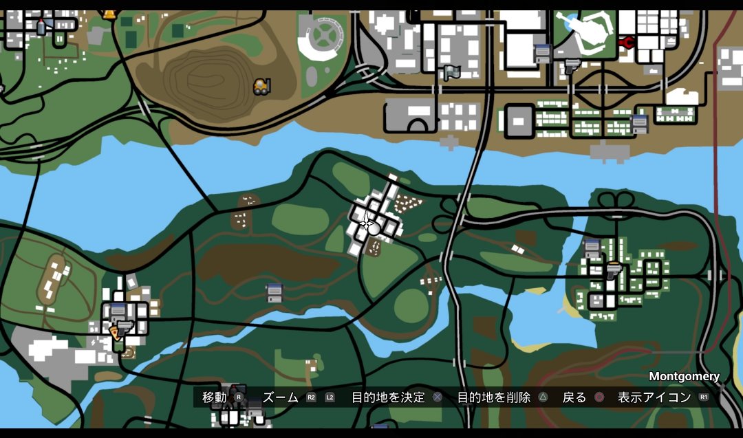 川の向こう側にラスベンチュラスが見える田舎町、モンゴメリーにもう1つの馬券売り場があります。ここはストーリー中でも登場する場所で、カタリーナと組んで強盗をする一連のミッションの中でこの馬券売り場を襲うことになります(「Against All Odds」)。そのためか、建物の横の路地にはリモート爆弾が。