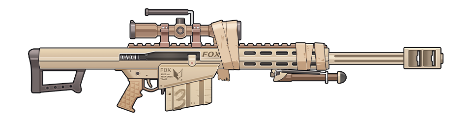 SRT特殊学園から支給された制式スナイパーライフル。高い貫通力で遮蔽物に隠れた相手を狙撃できる。また、弾速の速さを活かした超長距離の狙撃も可能。しかし非常に重いという欠点があり、オトギは肩凝りに悩まされているとか。
